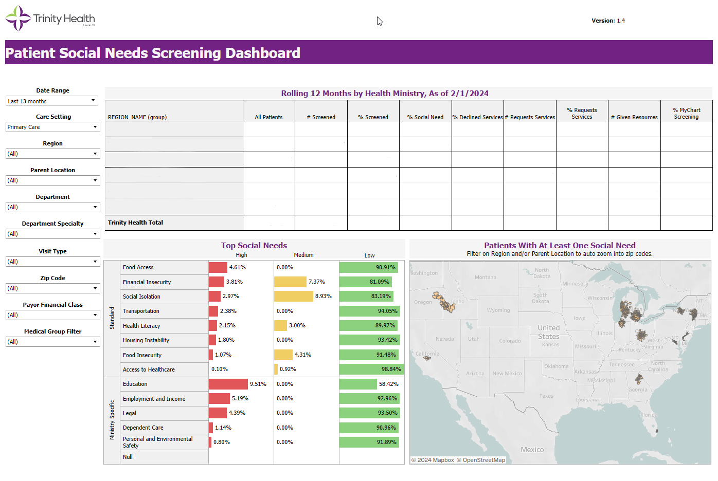 Trinity Health created a standardized patient social needs screening tool that’s available in 15 languages. We use it primarily in the ambulatory setting and are rolling it out broadly in inpatient settings.