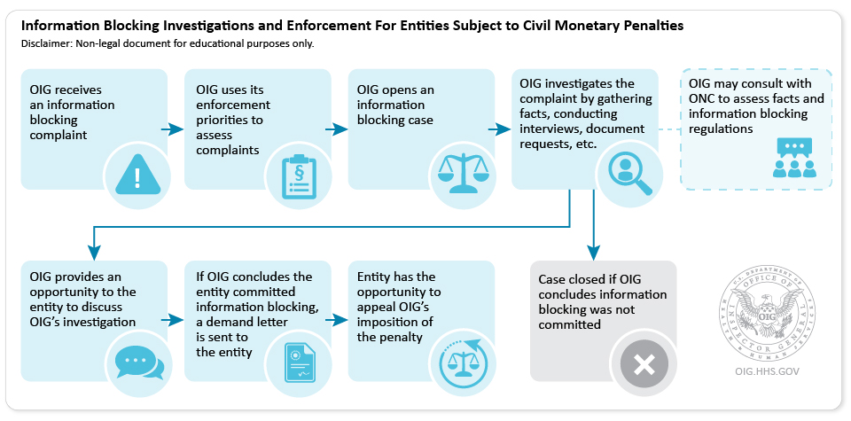 OIG says that it incorporated regulations published by the ONC as the basis for enforcing information blocking penalties. OIG expects enforcement to help improve interoperability in healthcare.